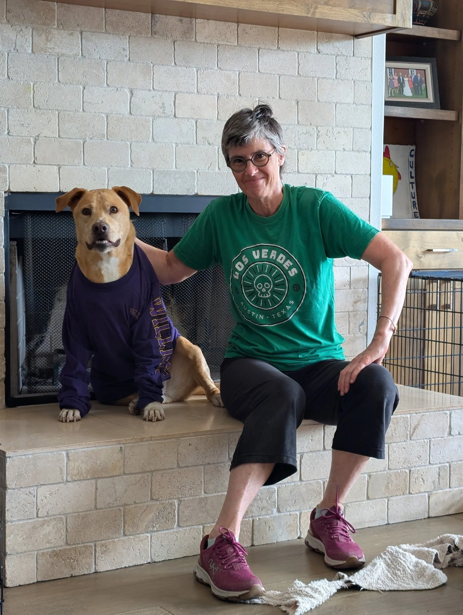 About the time that Rachel was visiting, we discovered that Woody had an injury on his arm. We had no idea how he got it but to make sure it wouldn’t get infected we took him into the vet. It was advised that we prevent him from licking it by putting a t-shirt on him. So we tried it and to our surprise he seemed to like it!! So naturally we ordered him an actual dog shirt for wearing casually just whenever, but soon learned that when interacting with Stony, Woody was more likely to get growly and aggressive when wearing clothes. Literally they had the biggest bitey-face-standing-on-two-legs-aggressive-fest I’ve ever seen when he had his shirt on! So that was short story of Woody wearing shirts. It was cute while it lasted.