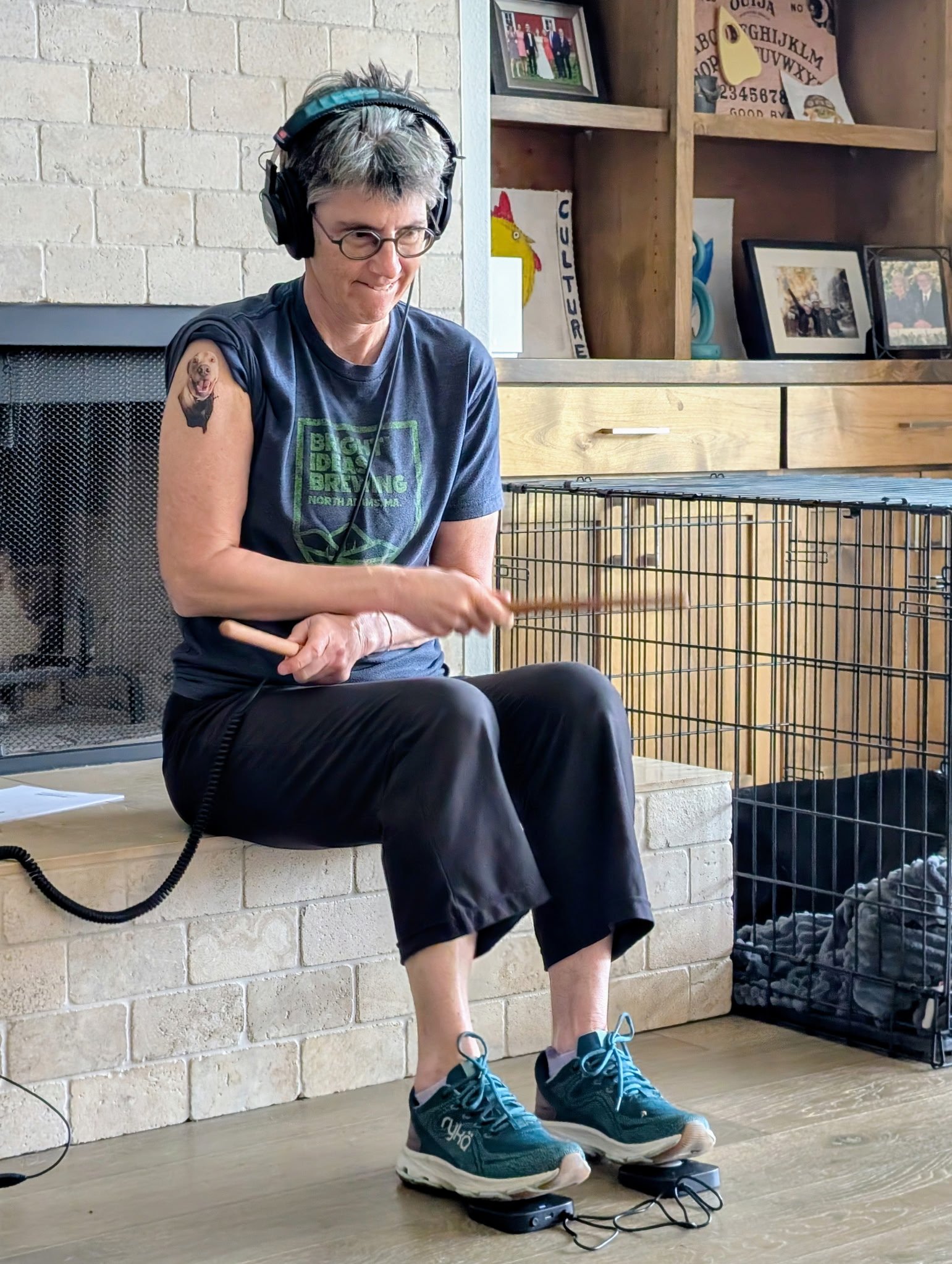 One of the things Rob got me for Xmas was a virtual drum set. So there are no drums at all, just fancy sticks and you hit the air in front of you and it sounds like a drum! It works pretty well but sometimes it seems like it gets misaligned and then the drum doesn’t make a sound or else it “hits” the wrong drum. Then you have to “recalibrate” the sticks. I am trying to learn a few things from the Musora website.