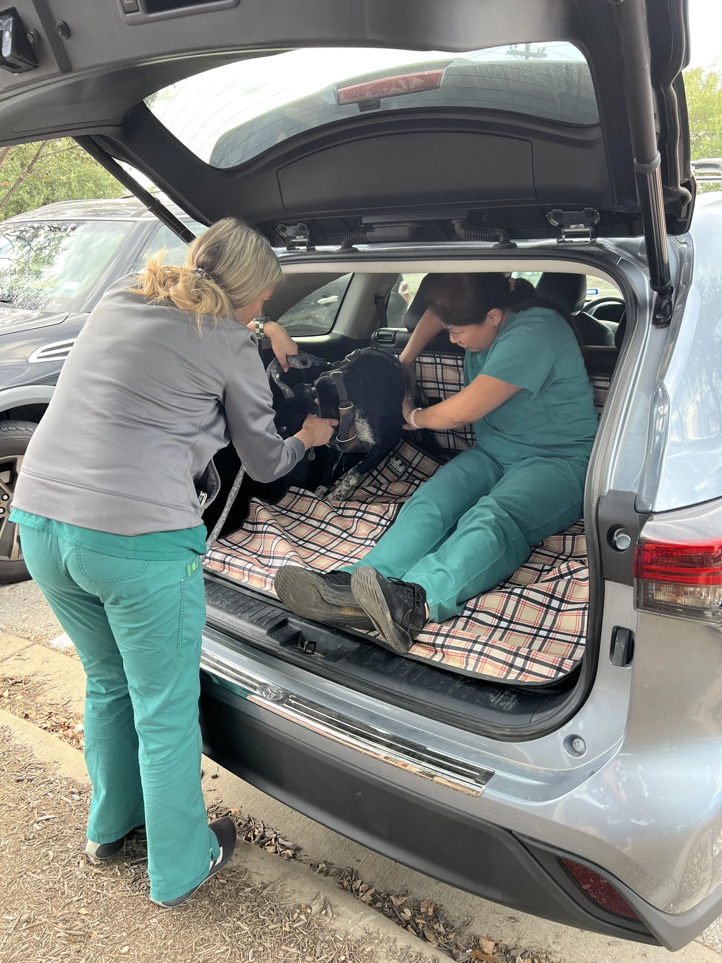 Around the holidays we noticed Stony itching a lot. Well Rob mostly noticed that. I noticed that the small rug was always bunched up due to Stony rubbing his tummy on it. So finally we took him to the vet and they diagnosed it as allergies. Anyway, long story, but he had to go back again when it recurred after the medications were used up. So now he takes a pill every day. The thing is that all of this meant more trips to the vet which is SUPER difficult. Stoney freaks out and gets all trembly and most of all WILL NOT GET OUT OF THE CAR. So a lot of times the doc/technician have to hang out with him in the back of the car.